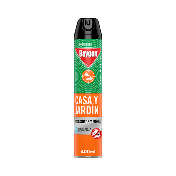 Baygon Casa y Jardín es un insecticida en aerosol a base de agua que te ayuda a eliminar a los insectos de tu hogar y del jardin y como mosquitos, moscas y hormigas y proteger a tu familia. Para un mejor efecto se recomienda cerrar puertas y ventanas, previa salida de personas y animales domésticos. Rocíe hacia arriba por 10 segundos a una distancia mínima de 1 metro de objetos y paredes. Salga del lugar y deje actuar el producto por 20 minutos y después ventile. Elimina al mosquito que puede transmitir zika, dengue y chikungunya protegiendo asi a tu familia.