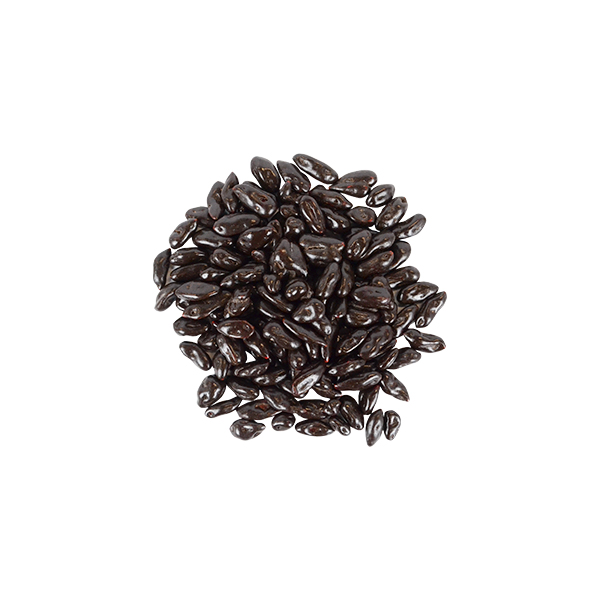 Bayas de Goji deshidratadas con cubierta de chocolate semiamargo sin azúcar. País de origen: México