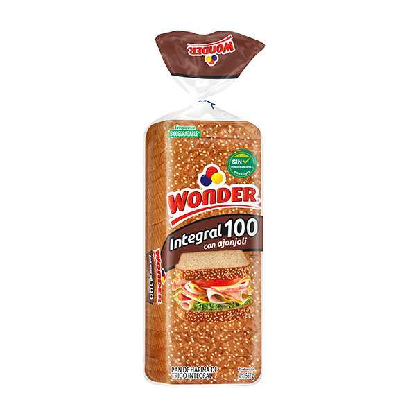 Pan integral 100 con ajonjolí Wonder 567g