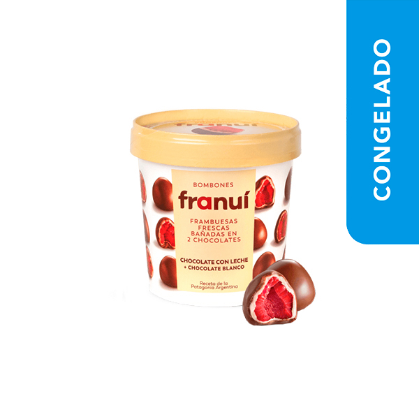 Frambuesas congeladas cubiertas de chocolate blanco y chocolate con leche Franuí 150g
