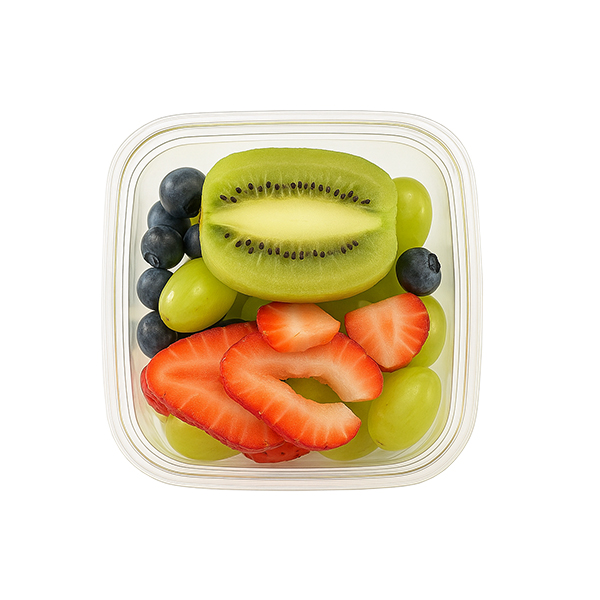 Mezcla fresca de fresa, kiwi, blueberries y uvas, lista para consumir. Ideal como snack, para bowls o como acompañamiento ligero y nutritivo.
