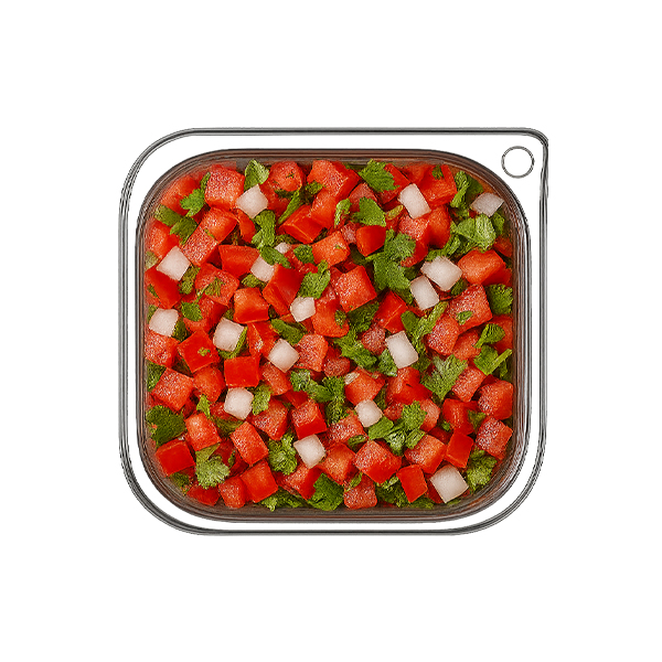 Clásica mezcla mexicana de jitomate, cebolla, chile serrano, cilantro y jugo de limón. Fresco, picado al momento, sin conservadores ni aditivos. Perfecto para acompañar tacos, carnes asadas o disfrutar con totopos. Peso aproximado de 200g.