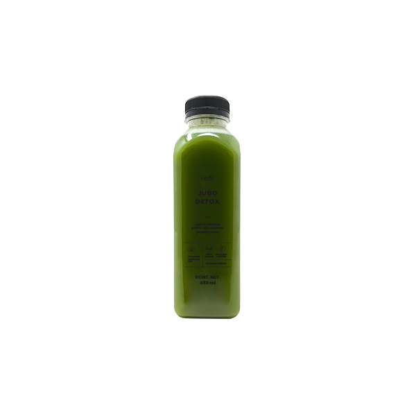 Ingredientes: Manzana, pepino, apio, espinaca, jengibre y limón. Jugo 100% natural. Sin azúcar añadida. Sin conservadores ni estabilizantes. Procesado en frío mediante altas presiones (HPP), conservando las características nutrimentales y sensoriales de las frutas y verduras. Mantener en refrigeración entre 0 a 4 °C. Por ser un producto 100% natural, la separación es normal, agítalo antes de consumir.