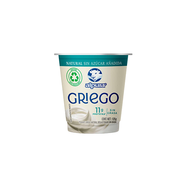 Yoghurt griego natural deslactosado sin azúcar sin grasa Alpura 125g