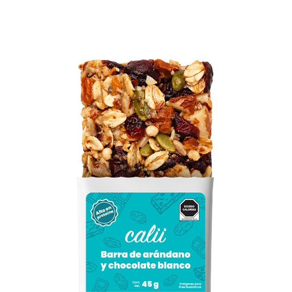 Calii | Barra de arándano y chocolate blanco alta en proteína Calii 45g